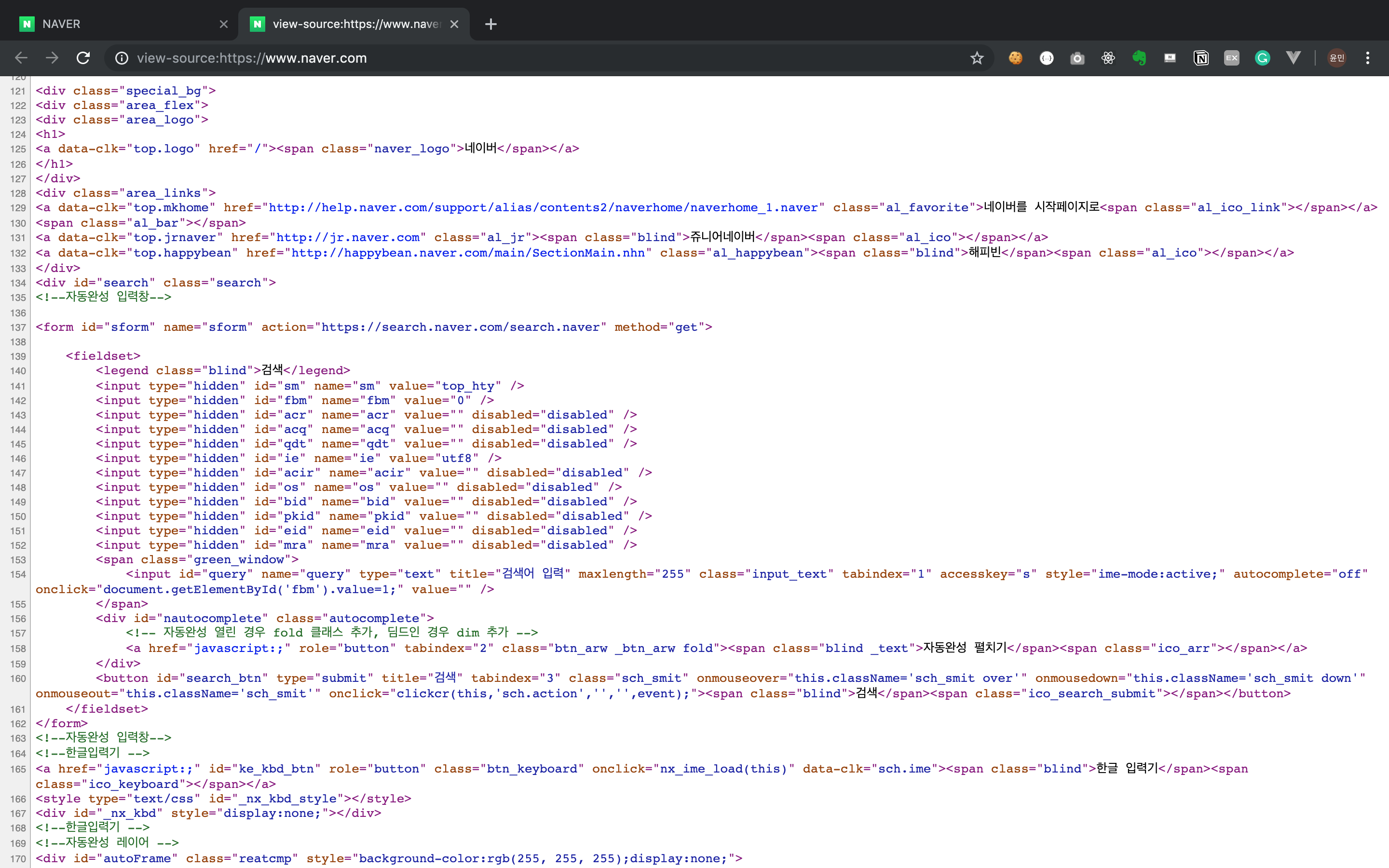 HTML은 웹 사이트를 구성하고 있는 뼈대 언어이기도 합니다. 그 증거는 웹사이트의 소스코드를 열어보면 알 수 있습니다.