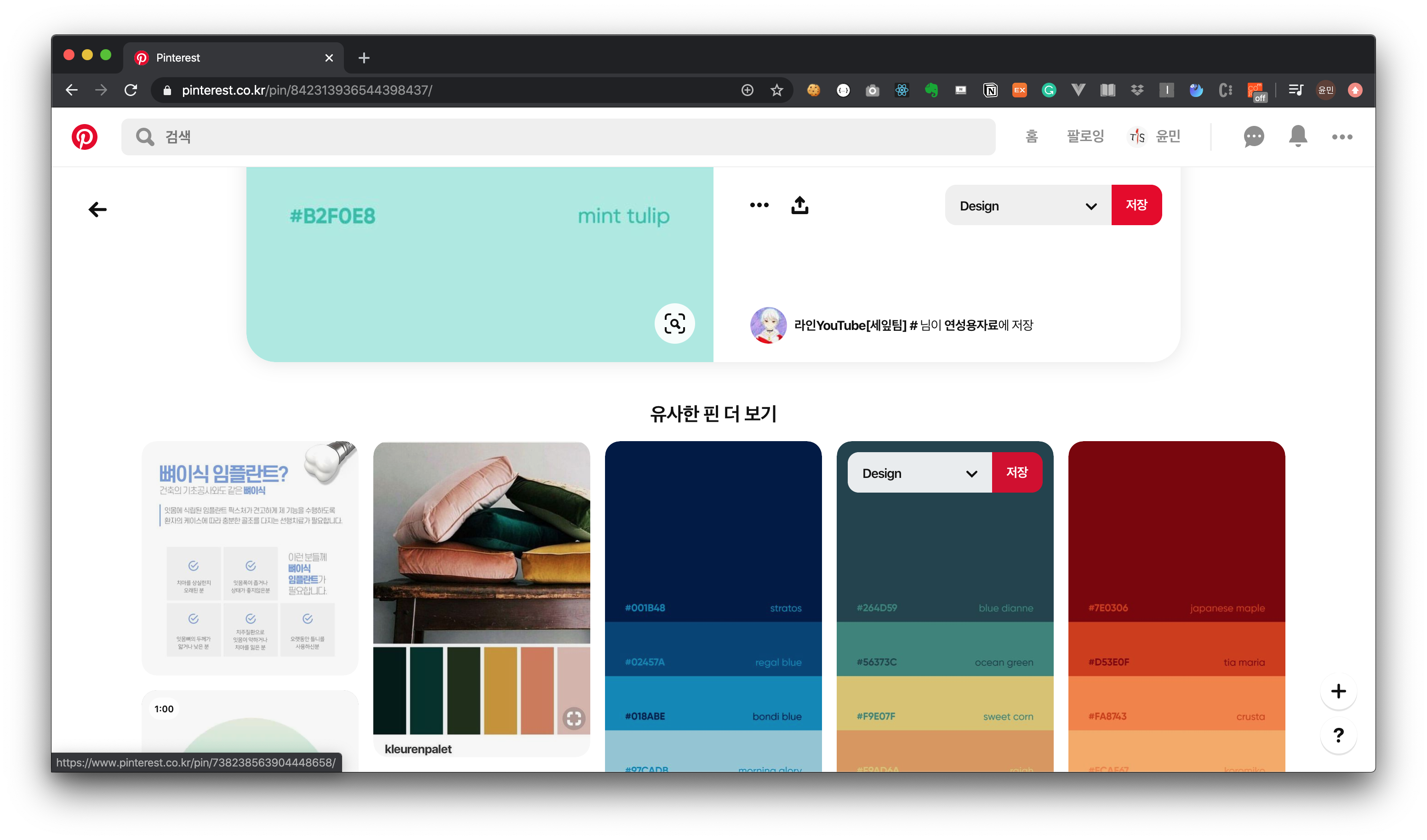 하나의 핀을 열게 되면 페이지 아래에 그 핀과 관련된 디자인들을 추천해 줍니다. (그걸 계속 보다 보면 하루종일 핀터레스트를 할 때도 있...)