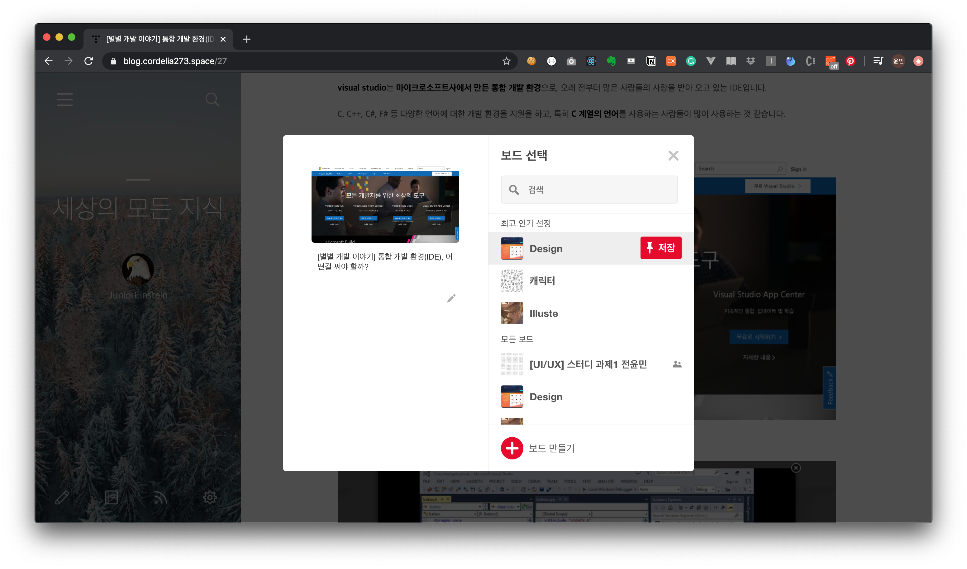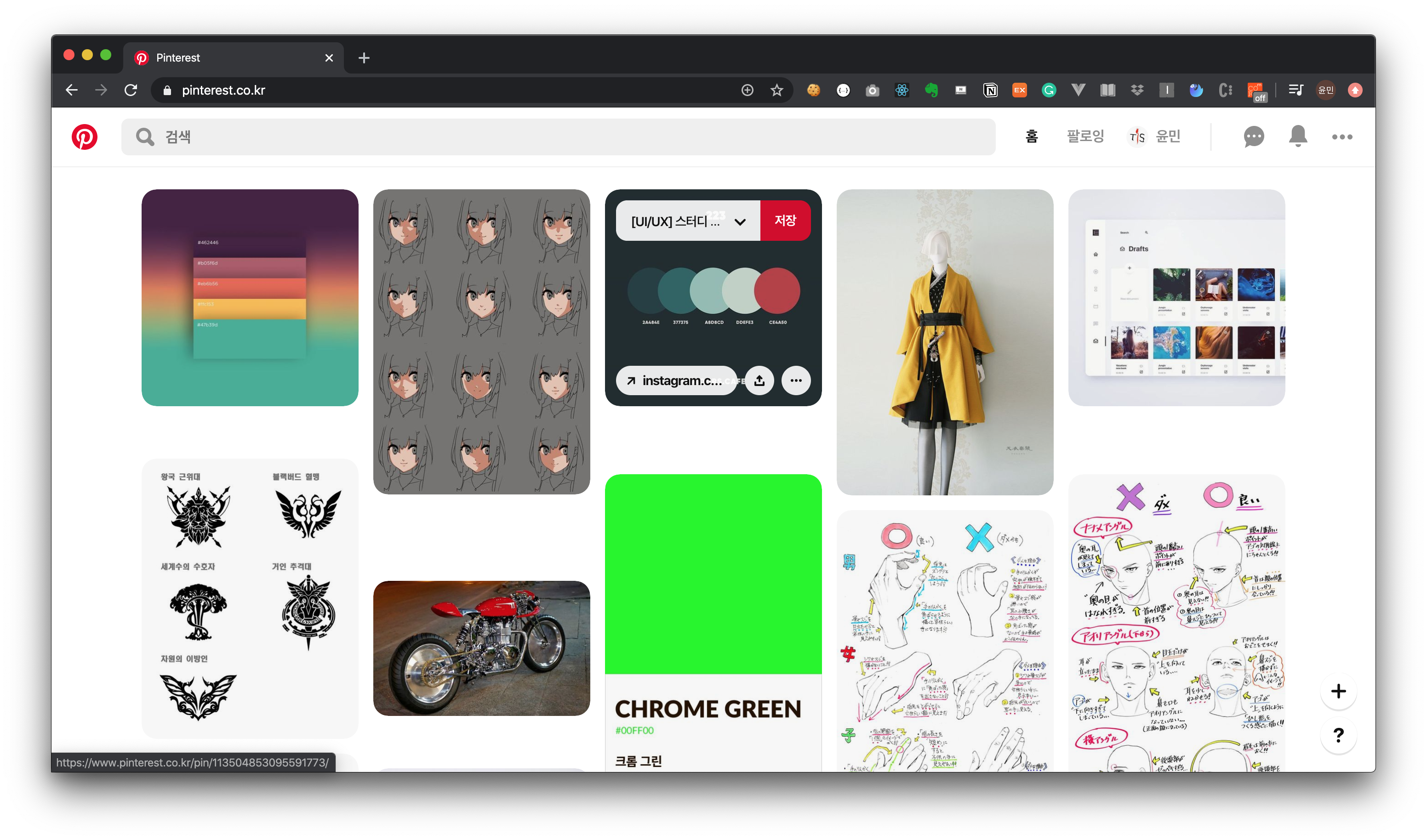 게다가 핀터레스트는 크롬 확장 스토어에 플러그인을 제공하고 있어 내가 블로그를 보다가, 혹은 웹 서핑을 하다가 저장해두고 싶은 사진이 있으면 쉽게 저장해둘 수 있습니다. 앞에서 소개했던 사이트들 보다 훨씬 진입장벽이 낮고 나도 새로운 핀을 만들고 다른 사람들과 쉽게 공유할 수 있다는 장점이 있죠.