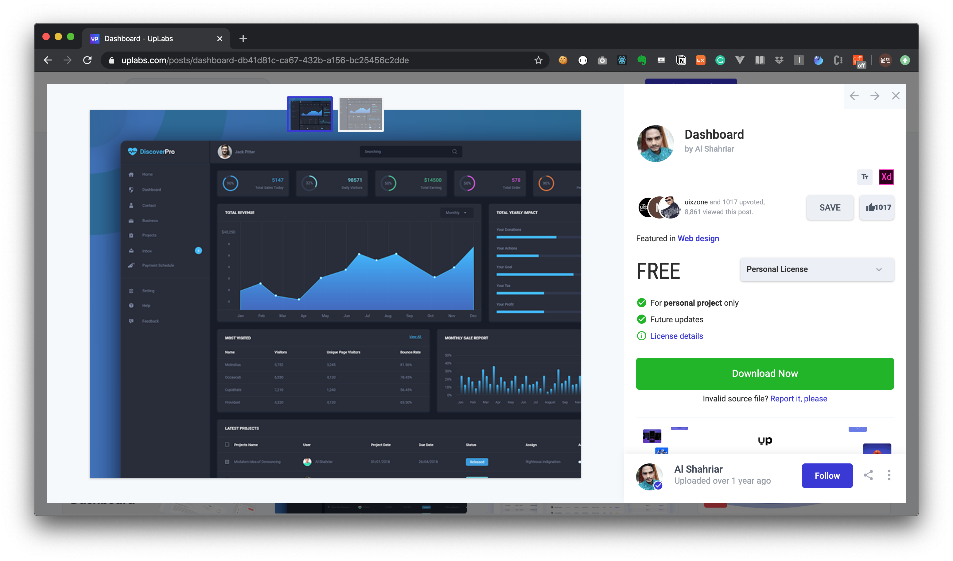 UpLabs의 검색 기능을 잘 활용하면 더 좋은 디자인을 찾을 수 있습니다. 개발 하고 싶은 페이지의 디자인을 검색해서 원하는 느낌의 디자인을 찾을 수 있습니다. 주로 스케치, Xd, Photoshop 등으로 작업된 디자인들이 올라오며, 무료로 된 디자인들은 다운로드 받아서 사용할 수 있습니다!