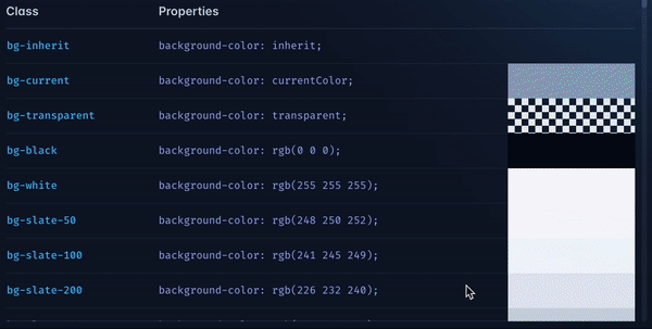 위의 코드와 같이 대괄호 안에 값을 직접 넣으면 테일윈드가 해당 값을 가지는 속성을 자동으로 css로 변환해 빌드합니다. 실제로 빌드된 결과를 보면 다음과 같은 코드들이 자동으로 추가되어 있는 것을 볼 수 있습니다!