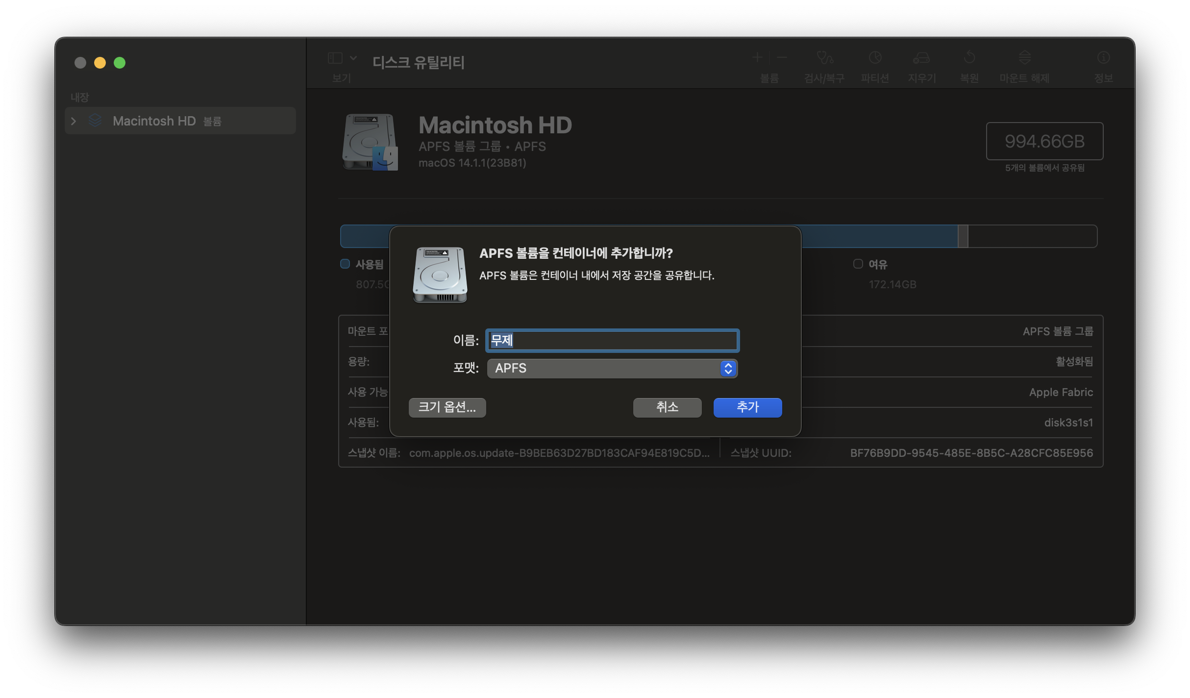 가상 파일 시스템을 알아보기 전에 파일 시스템을 먼저 알아보자. 파일 시스템은 디스크에 파일을 읽고 쓸 수 있게 도와주는 시스템이다. 이 파일 시스템에는 다양한 '포맷'이 존재한다. 외장 하드를 초기화해야 하는 상황을 떠올려보자. 초기화하고자 하는 디스크를 선택하고 '지우기'를 누르면 디스크를 어떤 포맷으로 지울지 선택할 수 있는 창이 나온다. 이 포맷은 다양한 파일 시스템의 한 종류로, 포맷마다 다른 방식으로 물리 디스크에 데이터를 저장하고 관리한다. 윈도우에서는 NTFS, ExFAT 등을 사용하고 맥OS에서는 APFS 등을 사용한다.