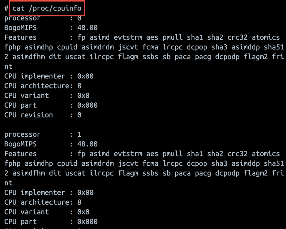 이것이 정말 매력적인 이유는 운영체제와 관련된 수많은 정보들을 우리에게 가장 익숙한 인터페이스로 접근할 수 있다는 것이다. Special File들이 가상 파일 시스템으로 관리되지 않았다면 우리는 운영체제의 정보들을 조회하기 위한 수많은 명령어들을 모두 외워야 했을 것이다. CPU의 정보를 확인하는 명령어를 살펴보자. /proc 폴더 안에 있는 cpuinfo라는 Special File을 일반적인 파일을 조회하는 것과 같이 'cat' 명령어를 통해 읽을 수 있었다.
